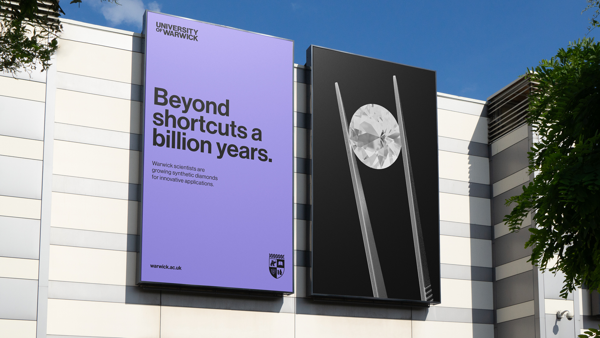 This gives freedom for bold and varied creative, while ensuring every execution still feels unmistakably part of the University of Warwick brand.